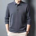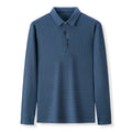 Men's Waffle Long Sleeved POLO Shirt with Letter Printed Lapel Casual Top