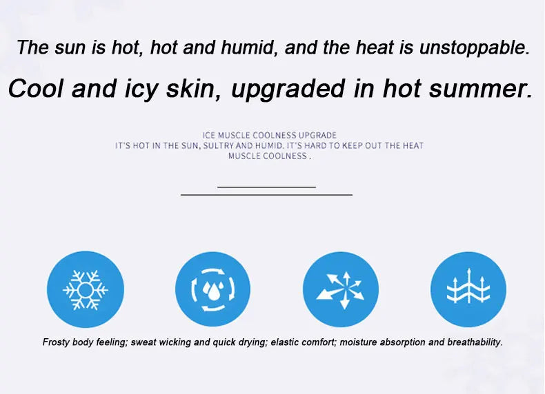 Frosty body feeling; sweat wicking and quick drying; elastic comfort; moisture absorption and breathability.