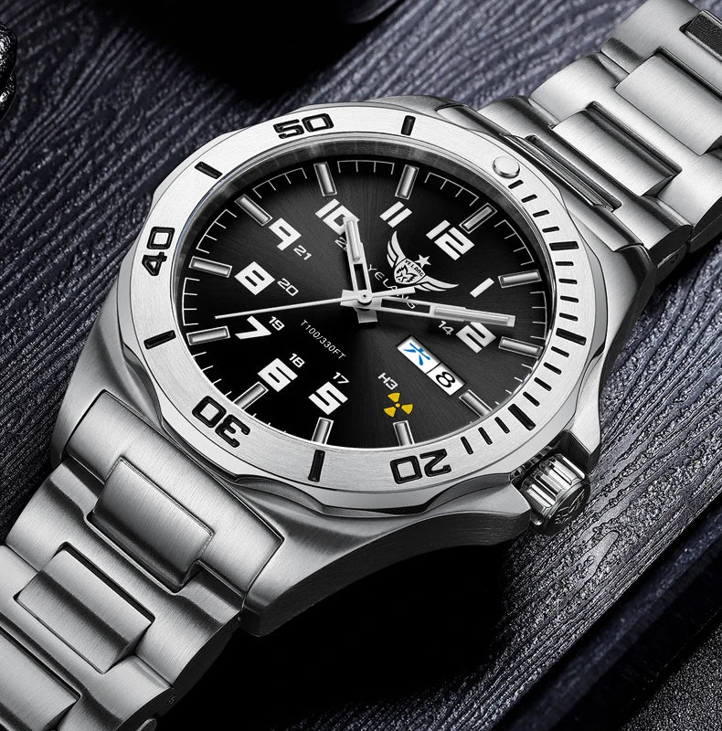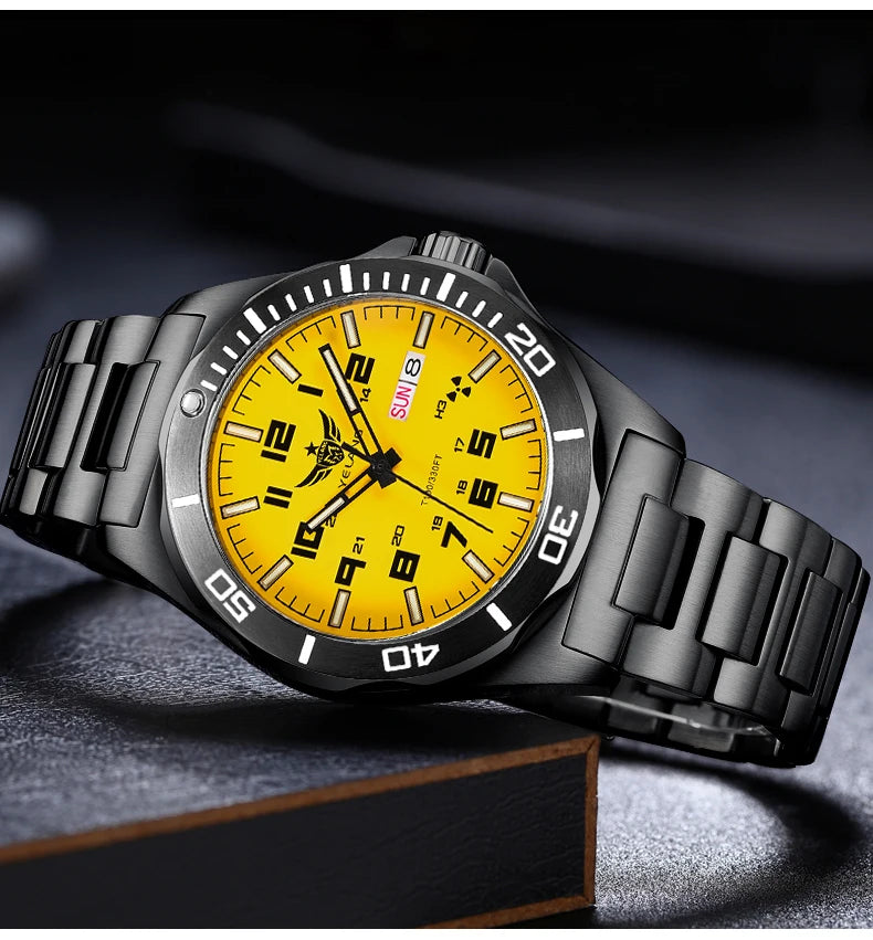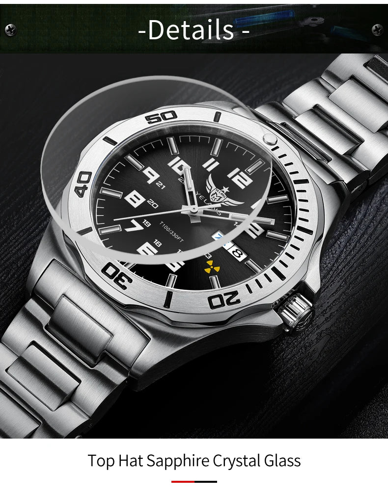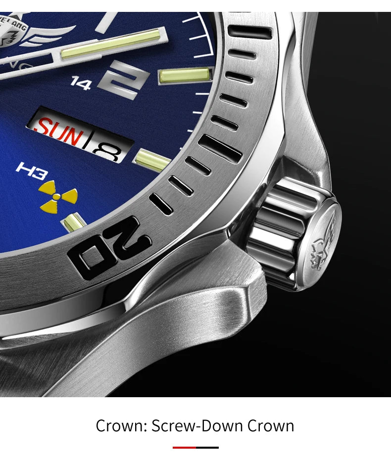 Feature : Complete Calendar,DIVER,Week Display,Screw crown,water proof
